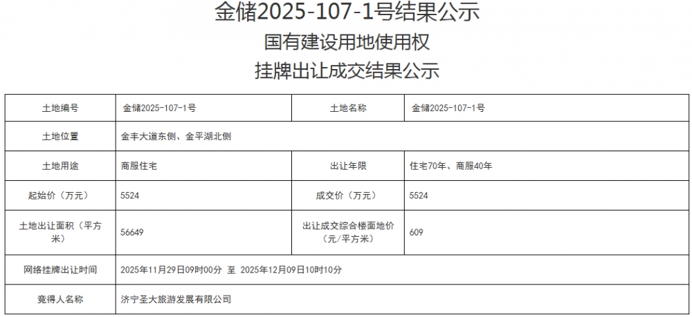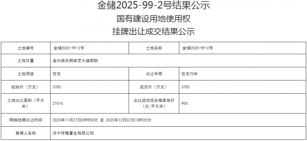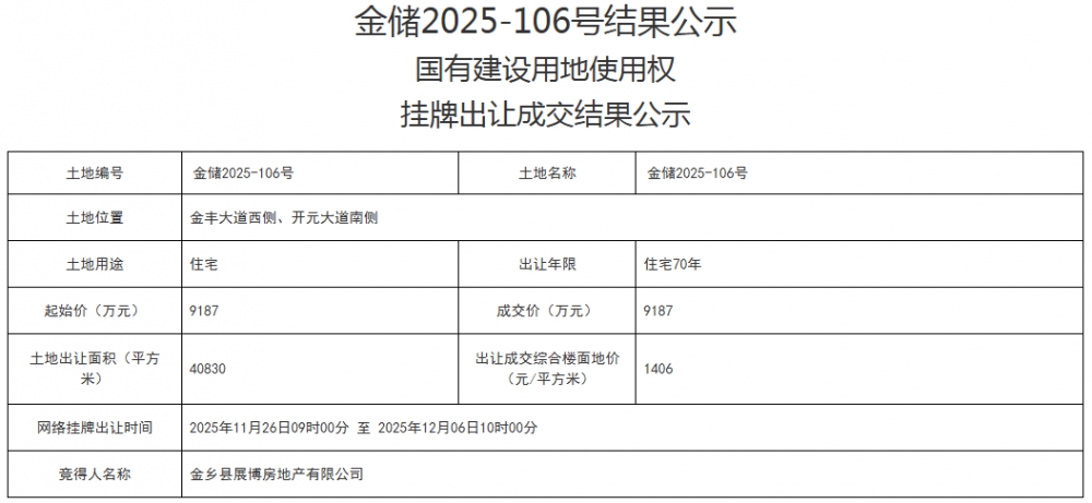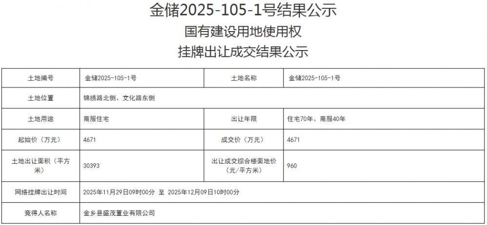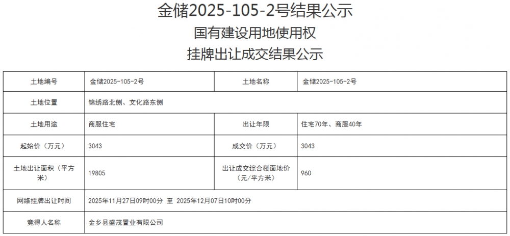• 金乡县6宗住宅用地成功出让